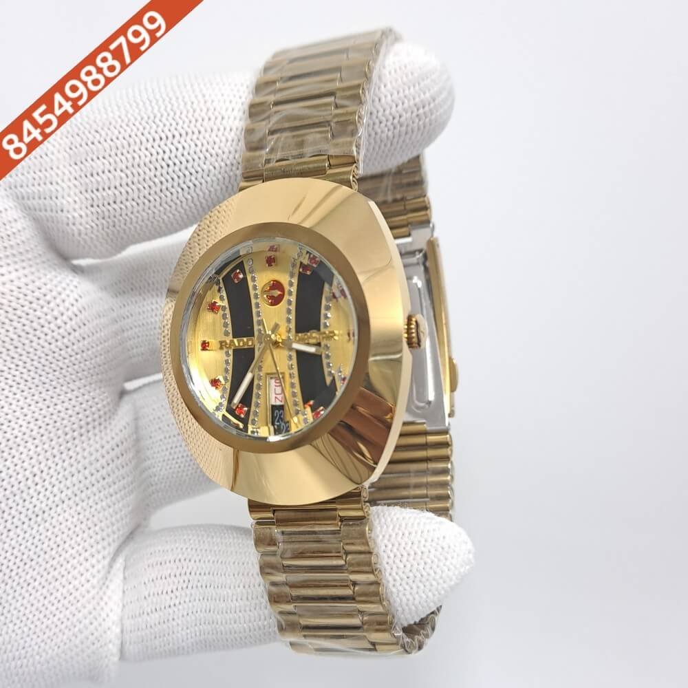 Rado Diastar Chronograph Full Gold Black Dial Watch